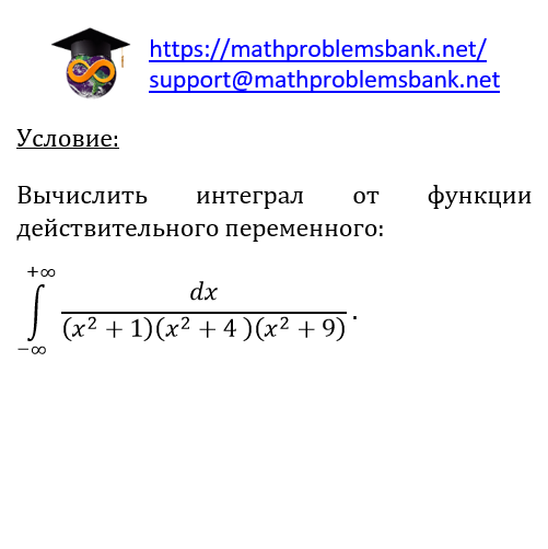 10.7.32 Здесь можете найти вычисления собственных и несобственных интегралов вещественной переменной с помощью вычетов, применяя различные приемы.