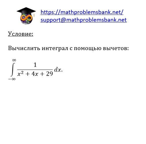 10.7.19 Здесь можете найти вычисления собственных и несобственных интегралов вещественной переменной с помощью вычетов, применяя различные приемы.